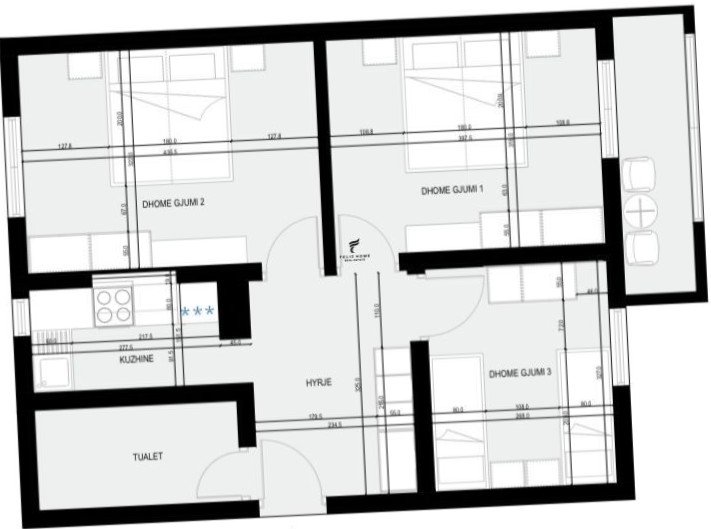 SHITET APARTAMENT 2+1+2 KODRA E DIELLIT 168.000EURO